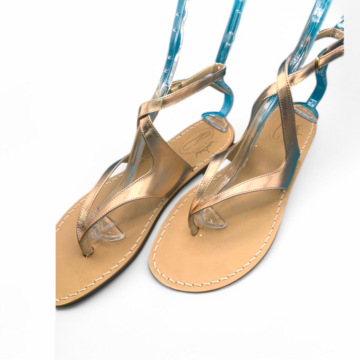 Il sandalo Atena Oro Rosa è l’unione perfetta tra eleganza e femminilità. La sua finitura metallica delicata dona luce e un tocco chic, perfetto per serate estive o cerimonie all’aperto.