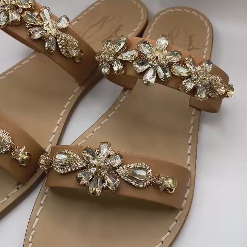 Brillante e raffinato, il sandalo Rugiada è un omaggio alla luce discreta e alla bellezza essenziale. Le fasce in vero cuoio naturale sono impreziosite da dettagli gioiello montati a mano, per un tocco di eleganza che non passa inosservato.