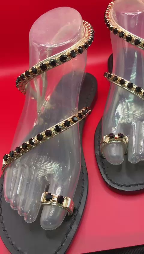 Sirenetta Black abbina cristalli neri profondi a una base oro lucido: una spirale elegante che esalta il piede con carattere e raffinatezza.